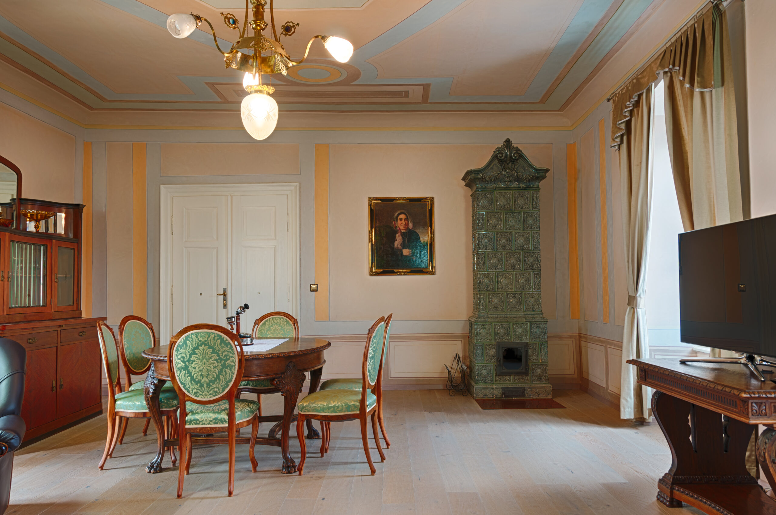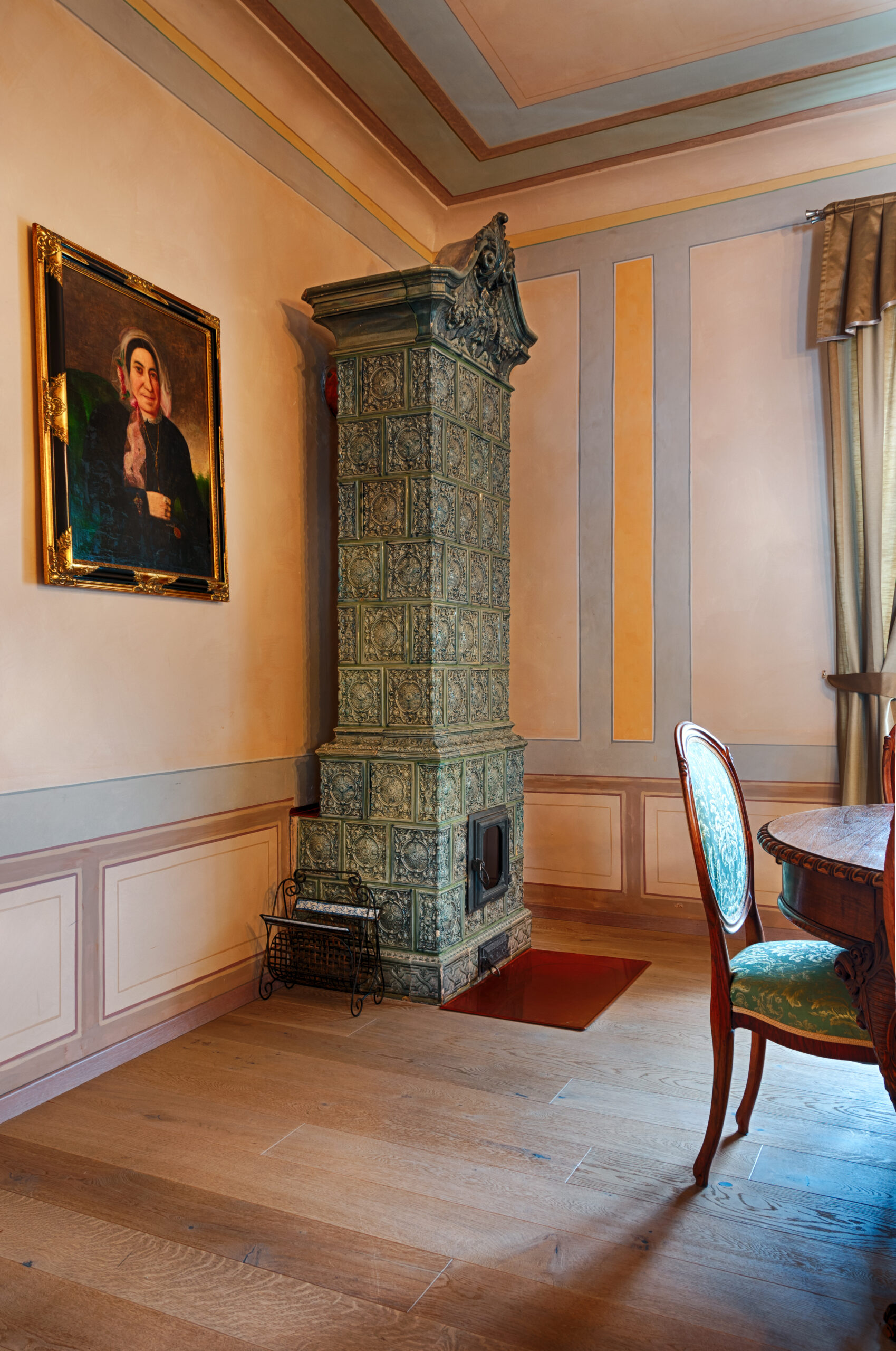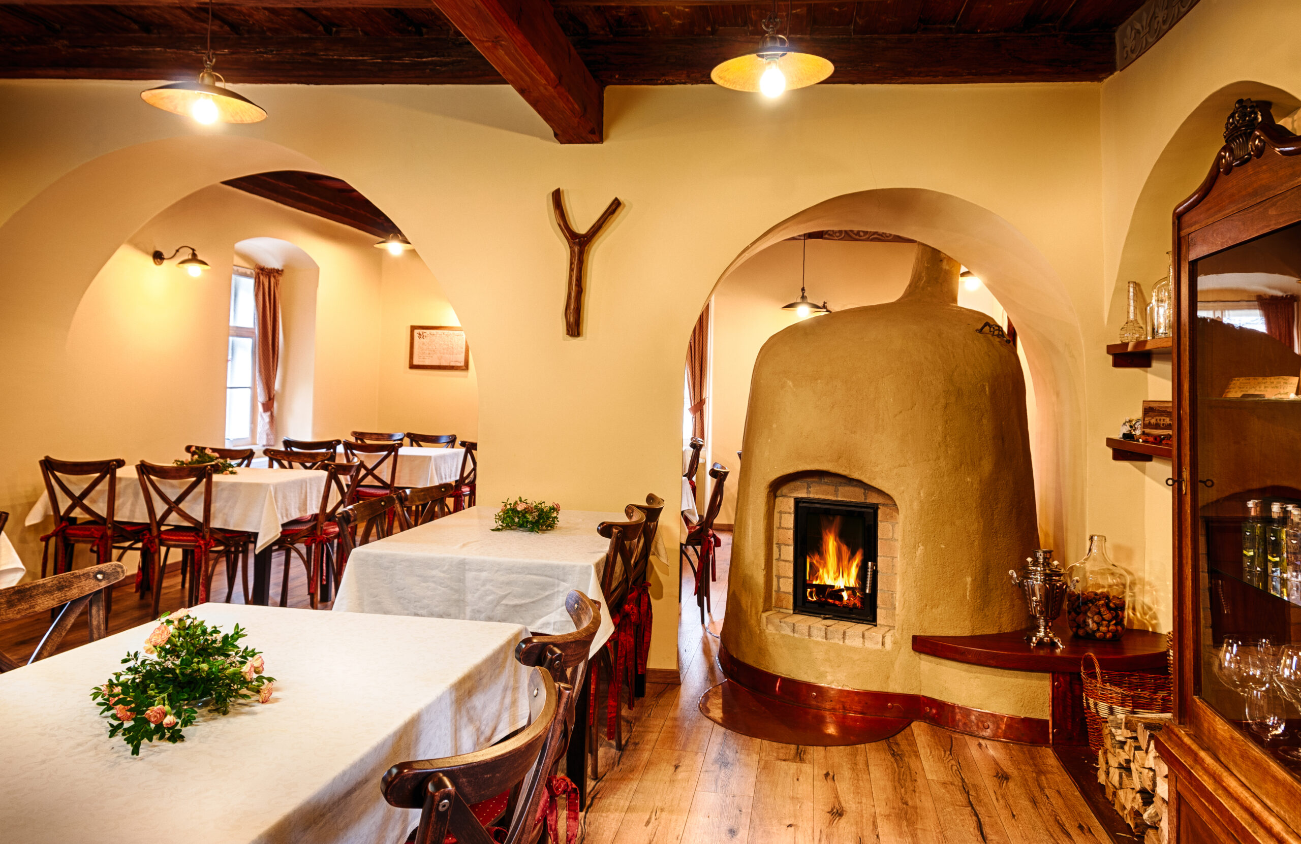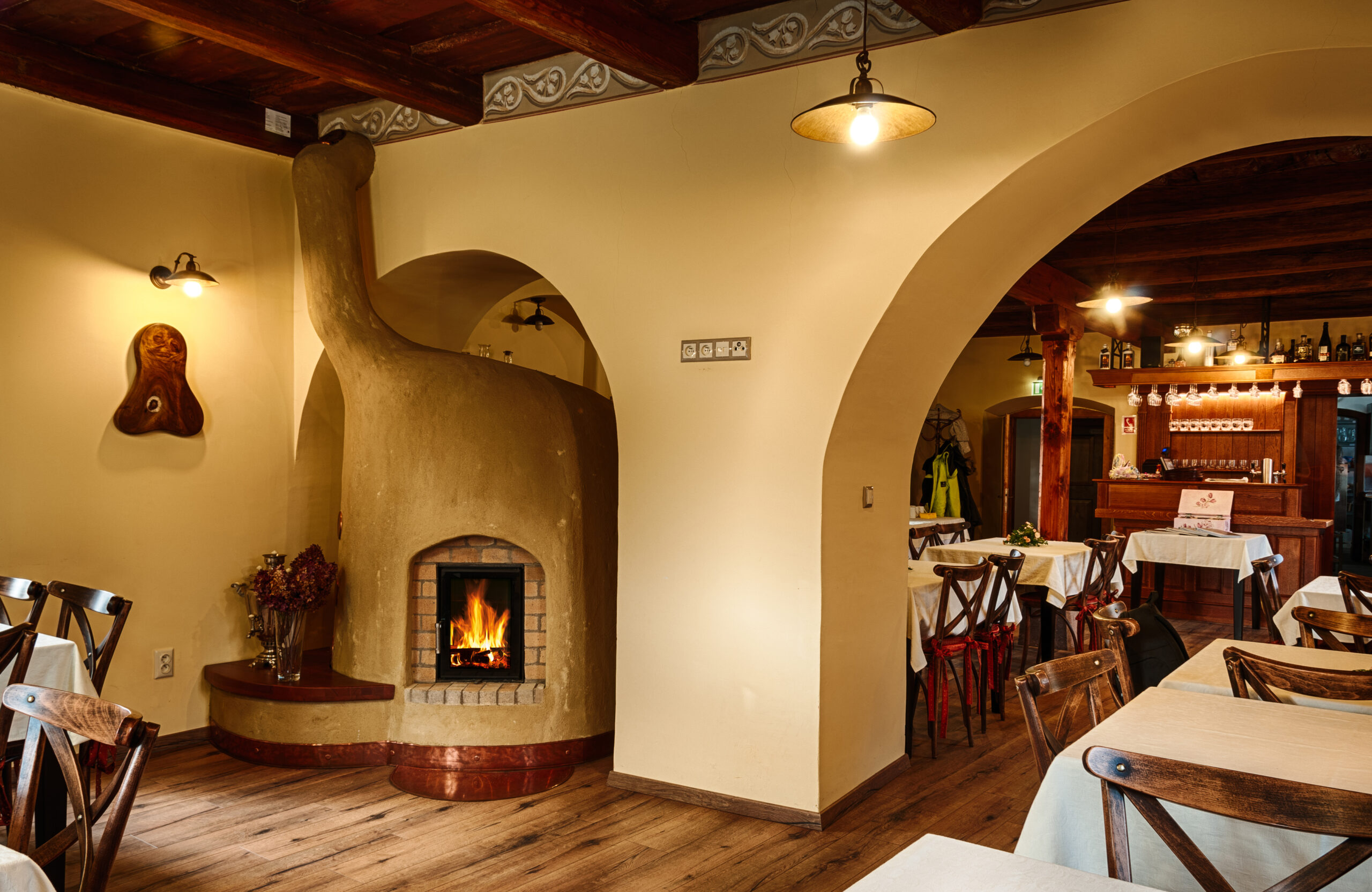 Po nájdení vhodného exempláru sme pec opatrne rozobrali a preniesli na miesto, kde bola opätovne postavená pôvodnou kachliarskou metódou na hlinu. V objekte bola vytvorená ďalšia akumulačná obostranná pec s kruhovým pôdorysom tak, aby bol oheň viditeľný z každého miesta reštaurácie, v ktorej je umiestnená.