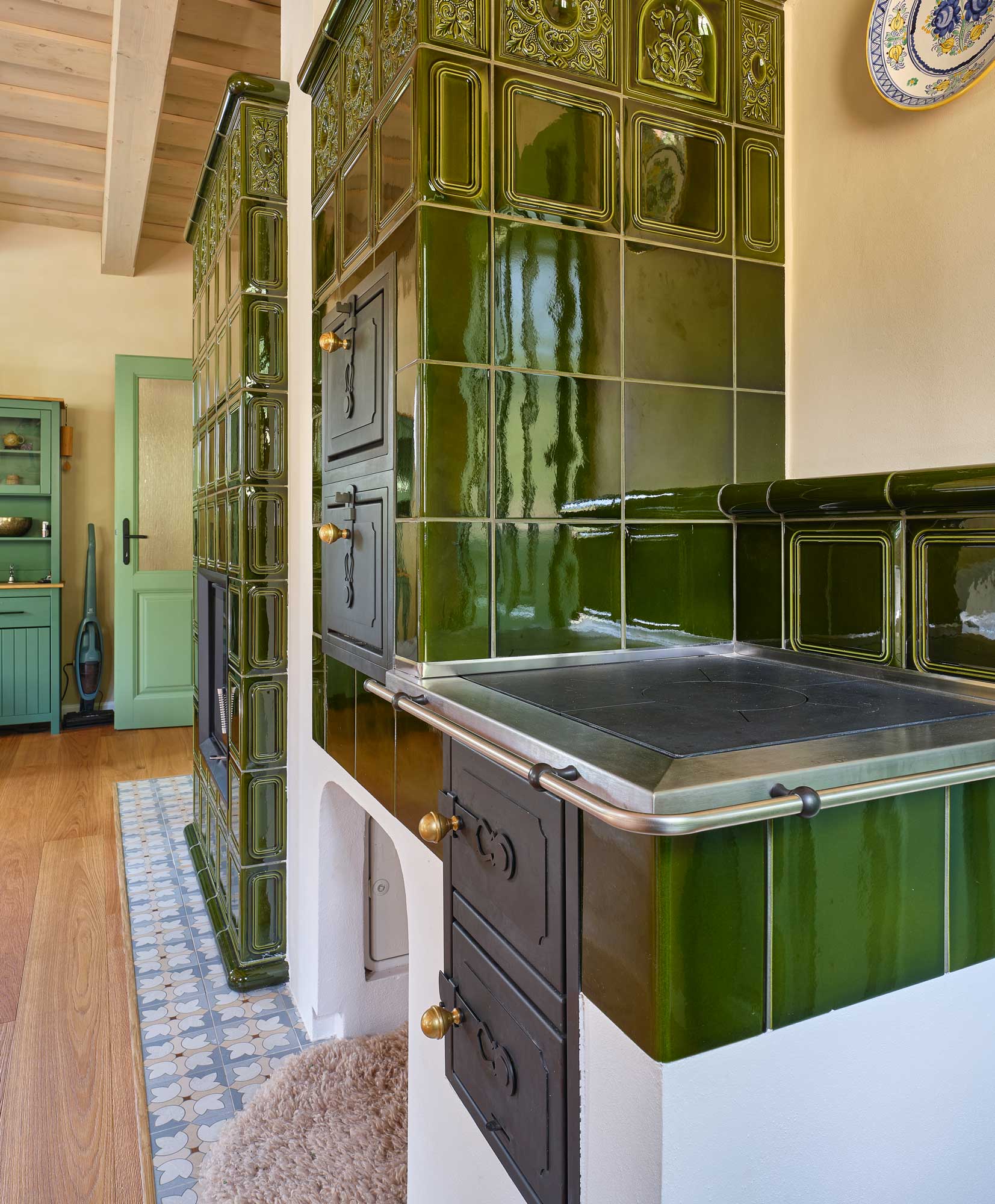 Hlavným prvkom je samostatný sporák s pečiacimi rúrami, ktorý poskytuje rýchle teplo na varenie a pečenie. Zároveň umožňuje čiastočnú akumuláciu tepla. Sporák nemá prieduchy, teplo sa šíri iba sálaním do priestoru, čím zabezpečuje príjemnú tepelnú pohodu.