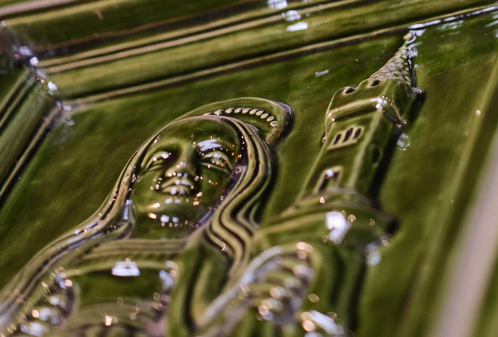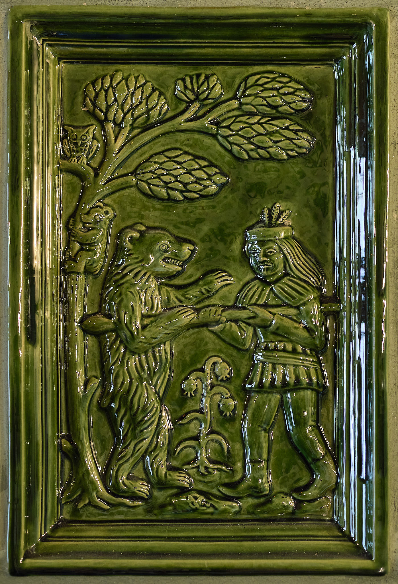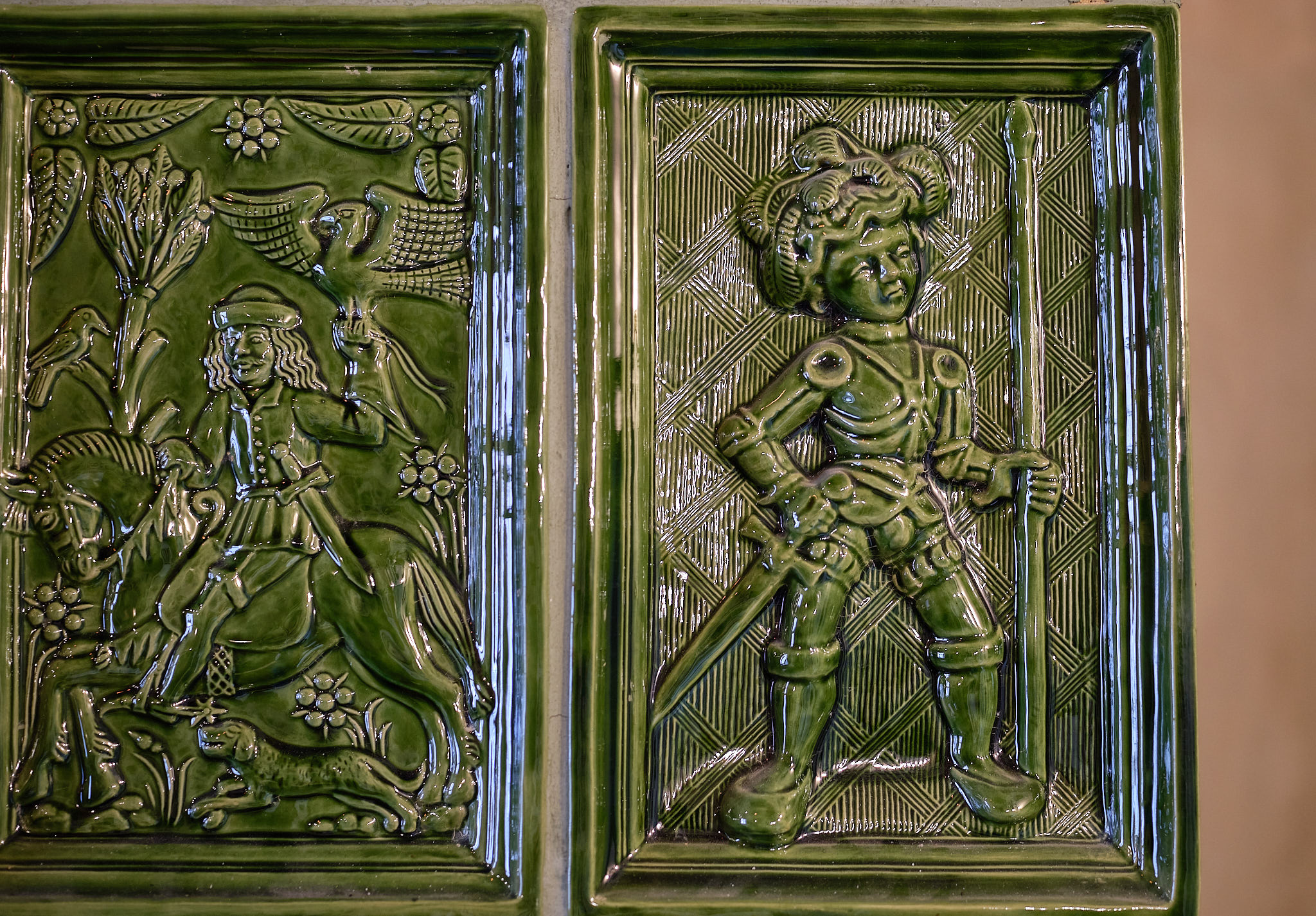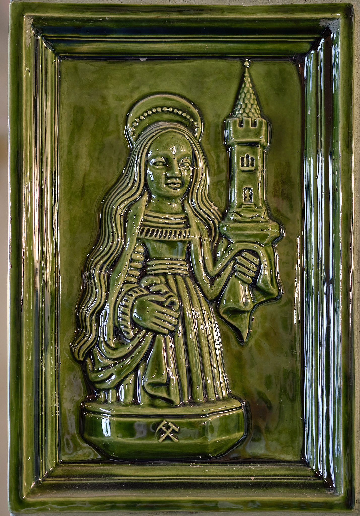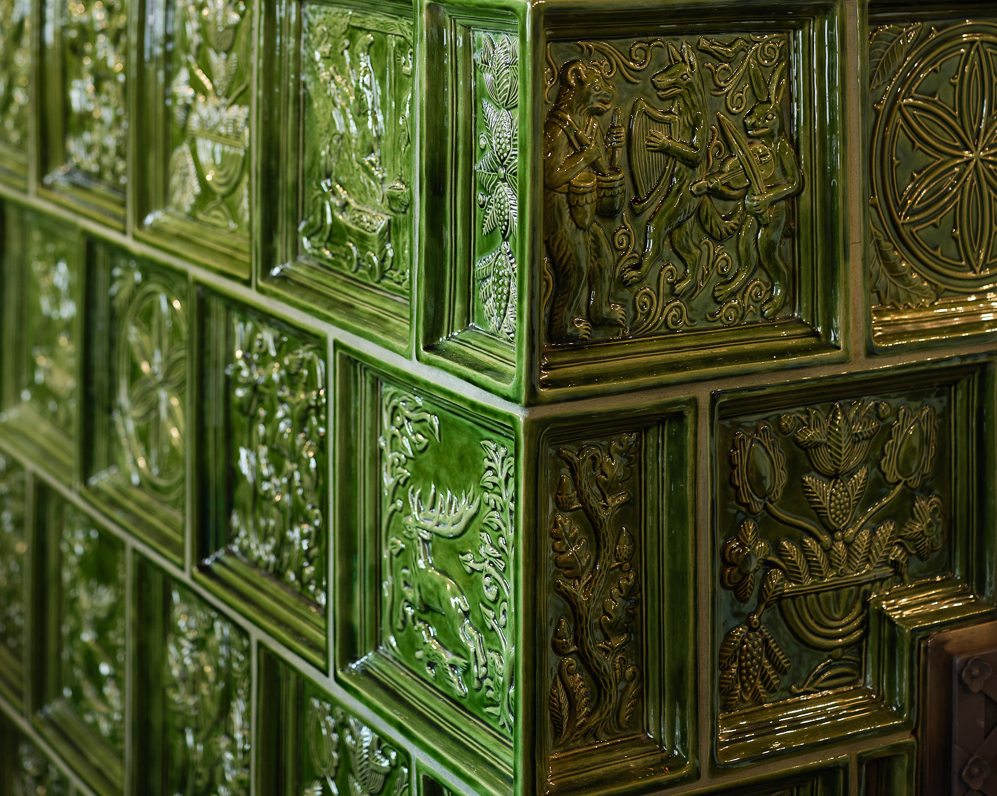 Základný tvar je inšpirovaný kompozíciou dobových pecí z Čiech, Slovenska, Rakúska a Nemecka. Ručne robené kachlice zdobia motívy gotického kachliarstva stredoslovenských banských miest a banícke motívy z rytín Agricolu.