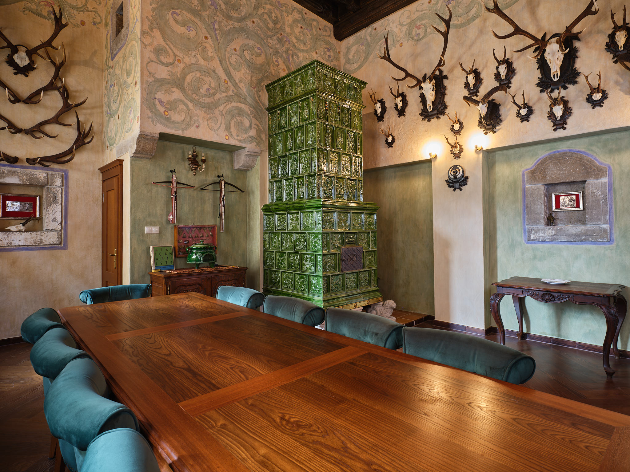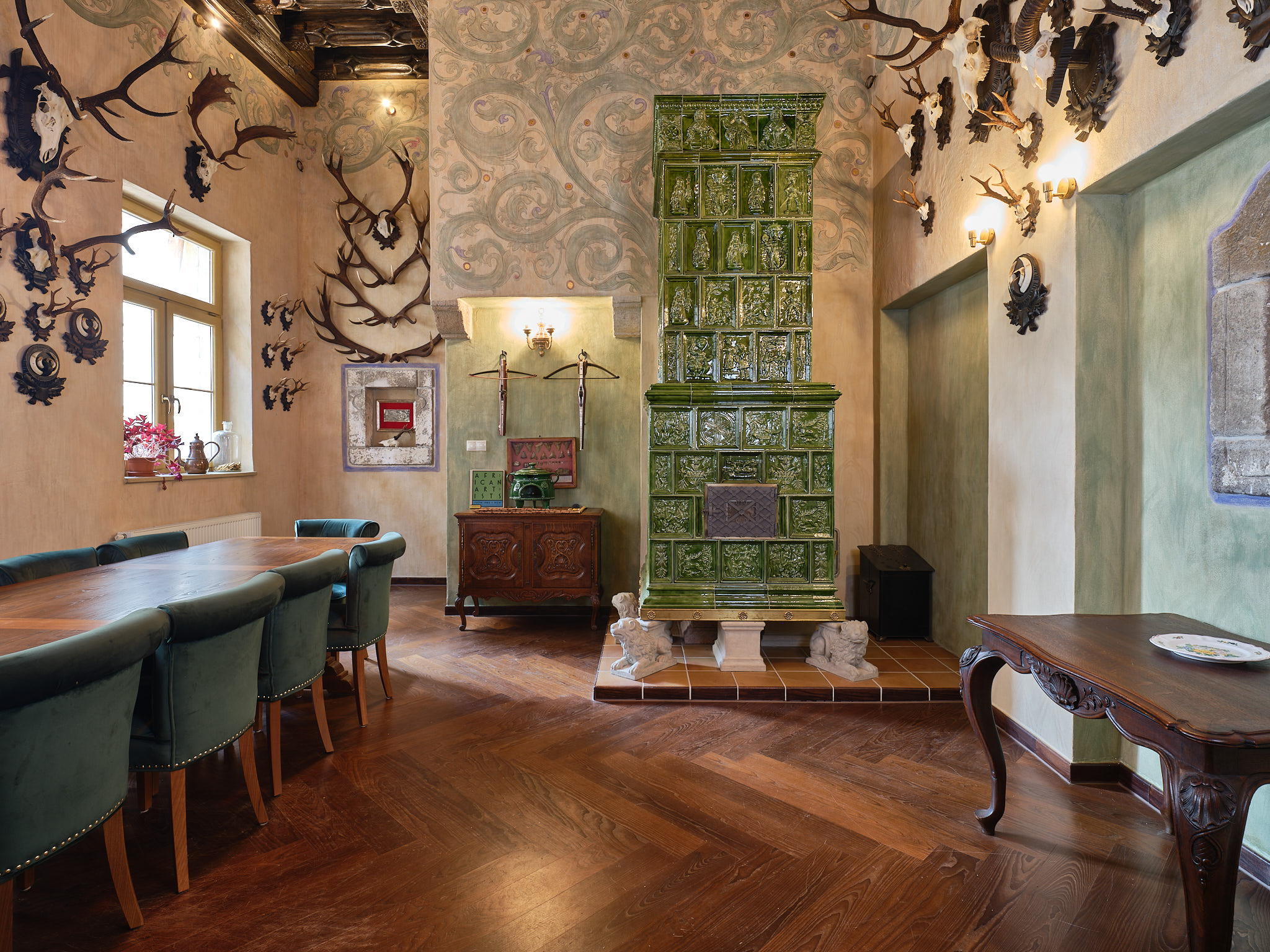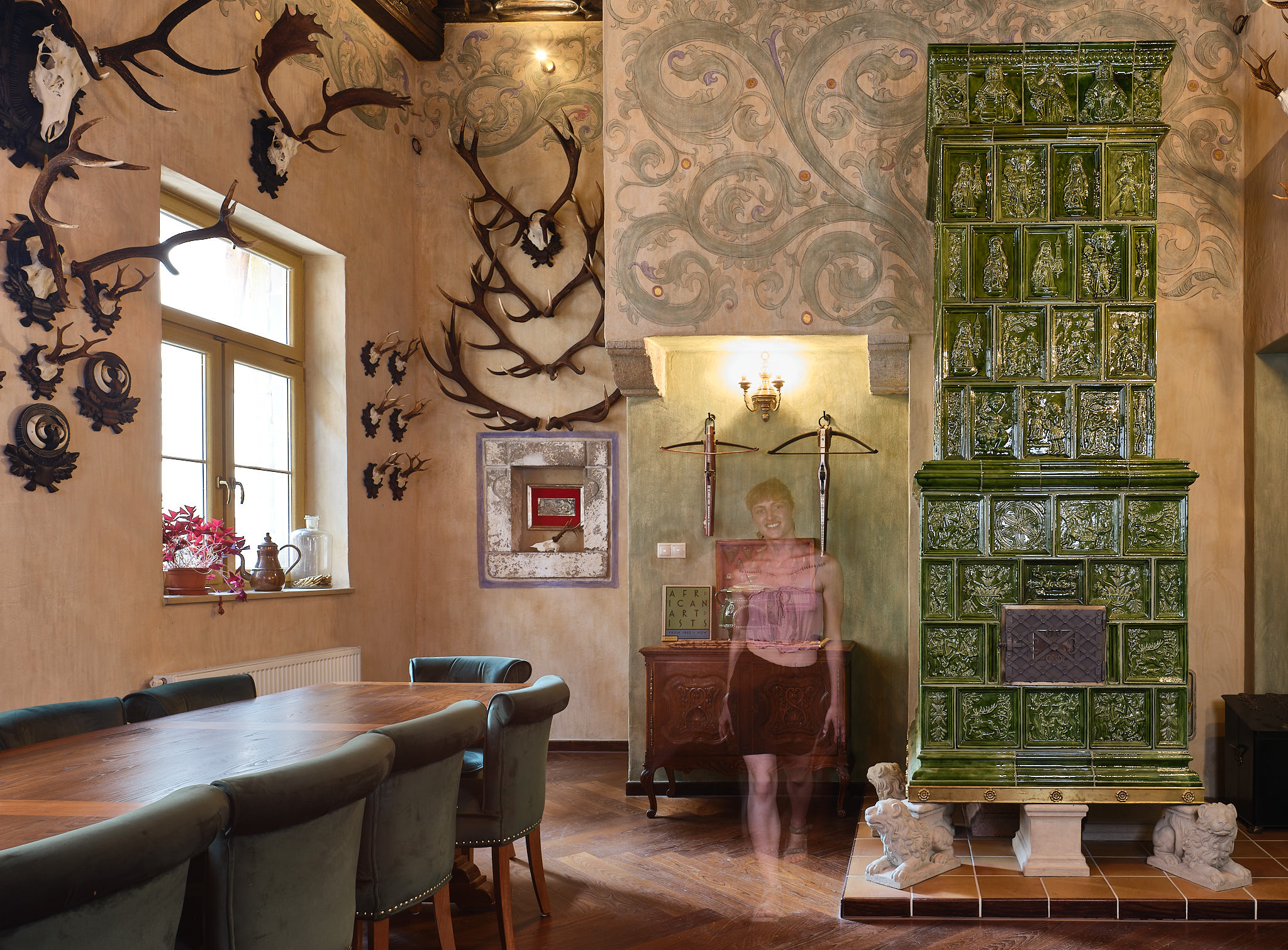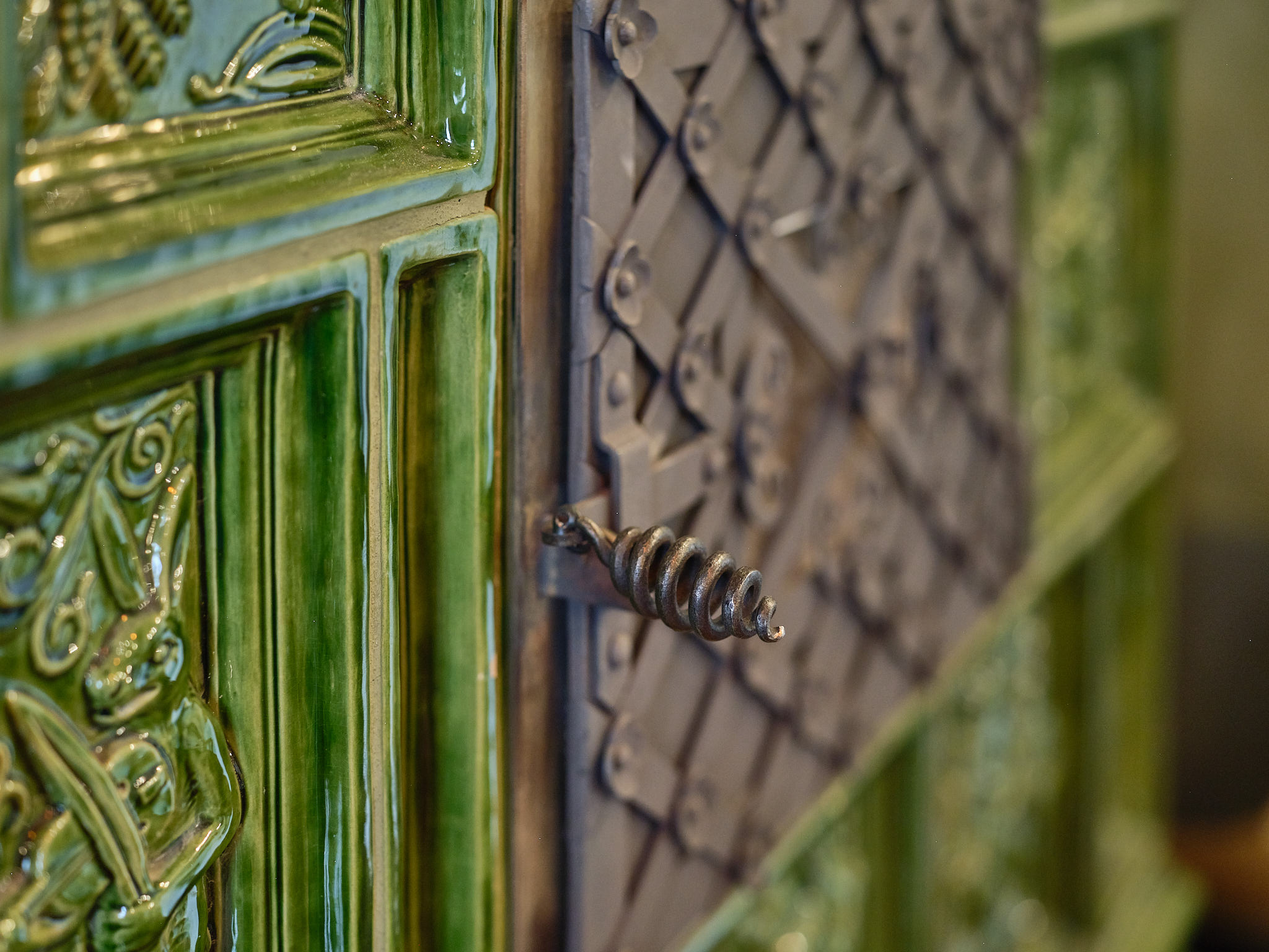 Unikátna kachľová pec bola vytvorená na mieru požiadavkám a charakteru priestoru v gotickej časti historického meštianskeho domu. V impozantnej výške 3,3 metra efektívne vyhrieva masívne priestory domu.